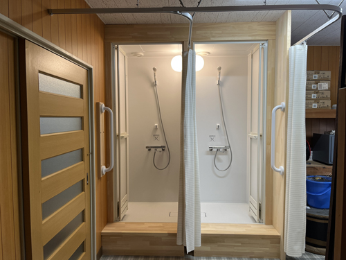災害時は避難施設となることから、お湯が出るシャワーブースも設置しています。