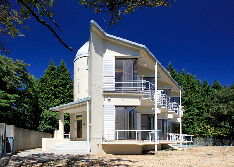 大川山1043m(讃岐山脈)直下に建つこの建物は昭和58年の竣工です。週末住宅だった建物をリノベーション、天体観測を主体とした研修施設に生まれ変わりました。周辺にはキャンプ場の各施設があり、また山頂の大山神社は子宝授かりの神様としてたくさんの人達がお参りに訪れます。 さて、この建物まだまだ躯体が健全であったため、内外装の全面改修を施し、塔屋には最新の天体望遠鏡が鎮座しています。絶好の観測スポットの場所に多くの天文ファンが訪れることを願っています。